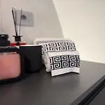 Badrummen har en bidé, en separat toalett och en dusch, samt bekvämligheter som hårtorkar och badlakan.